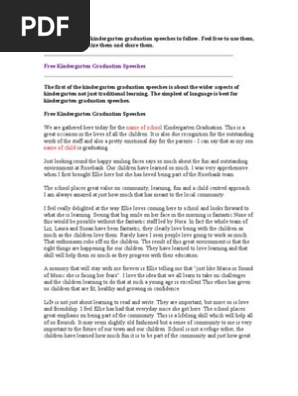 Free graduation speech for university and college students. There are many different thoughts about whether or not it is appropriate for preschoolers to participate in a graduation program or ceremony. Graduating from college is a great achievement and a profound time of change and possibility. I wanted to start with a reference to my right to speak (my daughter being at the kindergarten)the idea being to also establish rapport with the audience, my credibility and make kindergarten graduation speeches highly personal! Not coincidentally, seuss was also the maiden name of geisel's mother, henrietta.